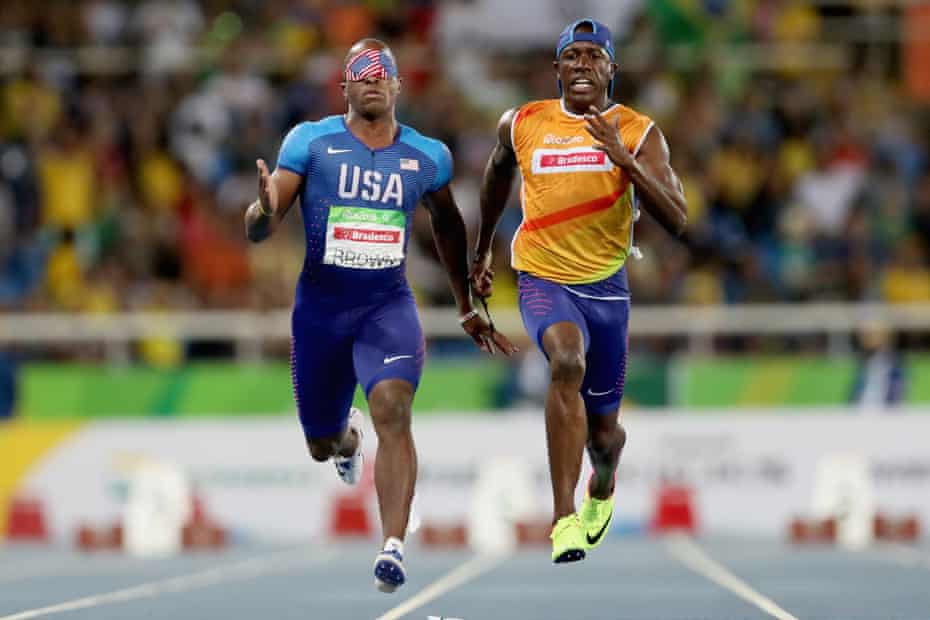 Guide Guilherme Soares De Santana Reacts To Blind Paralympian Terezinha Guilhermina Of Brazil Winning Gold Before She Knows She S Won The Women S 100m T11 Final Paralympics Sports Photos Paralympic Games